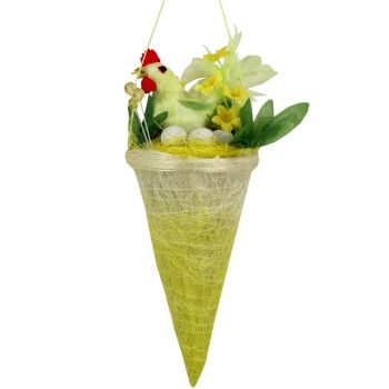 Sisalový kornút so sliepkou a vajíčkami v hniezde, so šnúrkou na zavesenie.